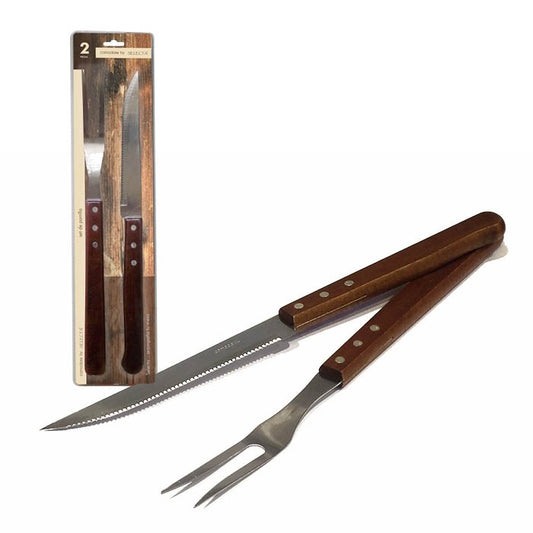 SET X2 PZAS ASADOR TENEDOR/CUCHILLO MANG.MADERA. 38CM