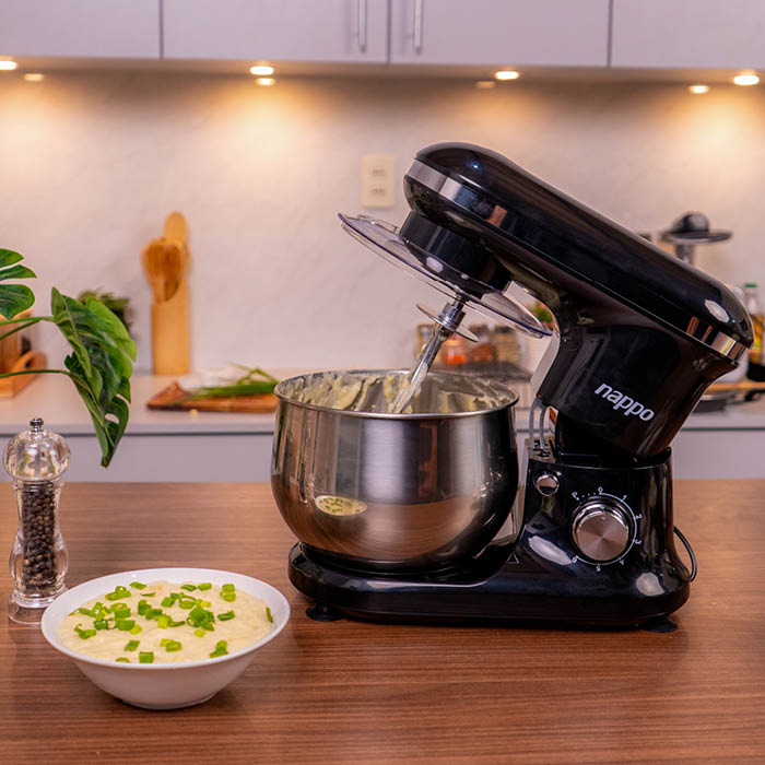 Transforma tu cocina con esta batidora planetaria profesional NEA-182, diseñada para preparaciones versátiles y resultados impecables. Su generoso bowl de acero inoxidable de 5L te permite trabajar con grandes volúmenes, ideal para familias y emprendimientos culinarios. Con una potencia de 1000W y 6 velocidades ajustables más función pulso, tienes control total sobre cada mezcla, desde masas delicadas hasta preparaciones densas. El sistema planetario garantiza una incorporación uniforme de ingredientes en todos los ángulos. Incluye un completo set de accesorios: protector transparente anti-salpicaduras para mayor seguridad, batidor versátil, batidor plano para mezclas precisas y gancho para amasar profesional. Durabilidad y rendimiento en un diseño elegante negro que complementa cualquier cocina moderna.