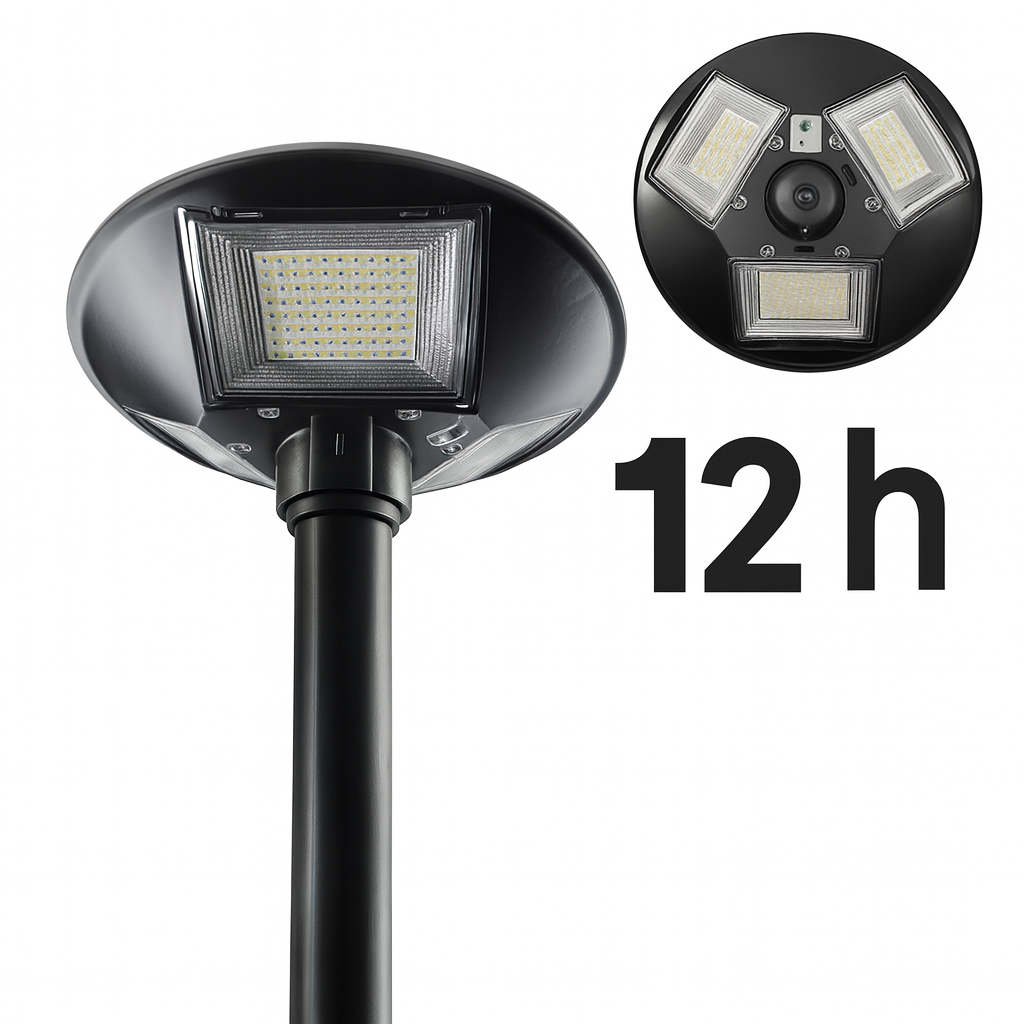 Con 150W de potencia, encendido automático, control remoto y una vida útil de hasta 50.000 horas, es ideal para iluminar calles, patios, parcelas o caminos con energía limpia y sin consumo eléctrico.