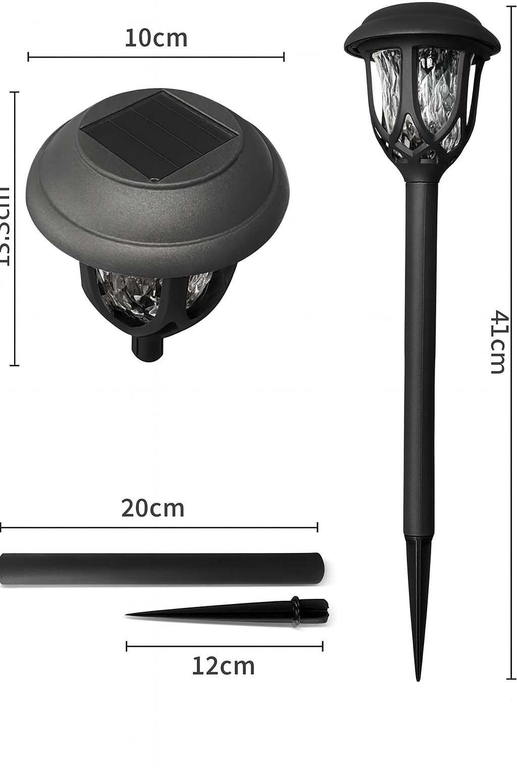 Estas luminarias solares con estaca están pensadas para transformar cualquier espacio exterior con luz cálida, sin necesidad de cables ni consumo eléctrico. Se cargan durante el día con energía solar y se encienden automáticamente al anochecer. Son perfectas para caminos, jardines, maceteros o entradas.