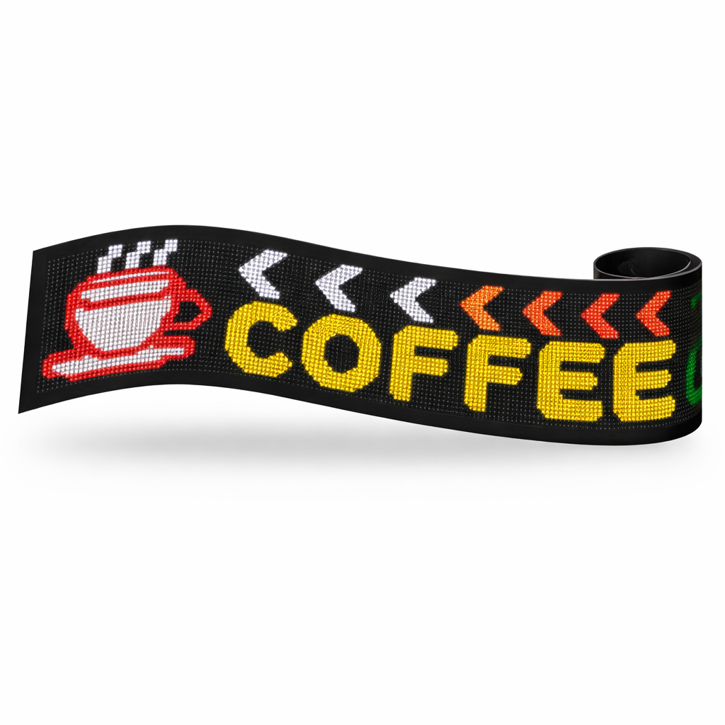 La matriz de 256 × 28 píxeles es ideal para textos largos, gráficos, fotos y animaciones tipo “ojos”, logrando una comunicación visual impactante.