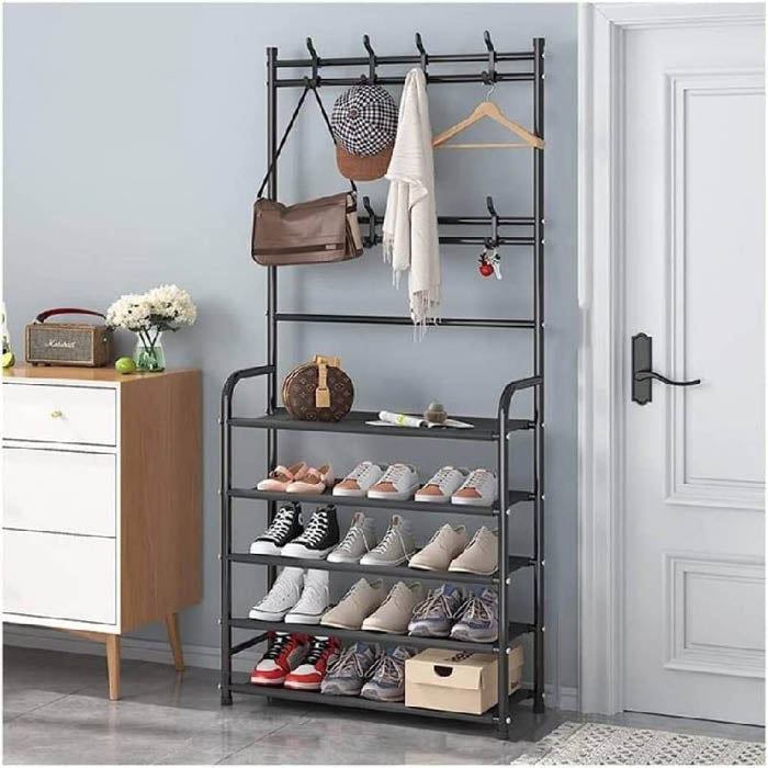 · Diseño 2 en 1: Organizador para zapatos y Perchero de pie.