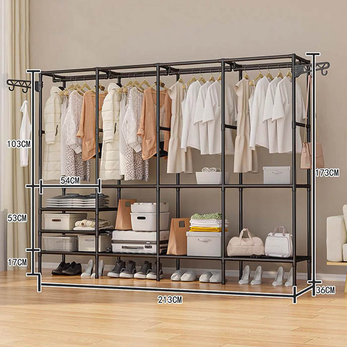 · Cuádruple (4 sectores de perchero), 10 Estantes y Ganchos Laterales