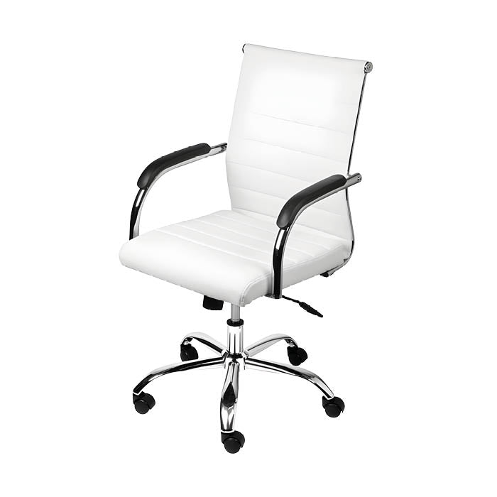 SILLA DE OFICINA FLORENCIA (BC) LEVEL La silla de oficina FLORENCIA es el equilibrio perfecto entre elegancia ejecutiva y funcionalidad práctica. Diseñada para profesionales que valoran la calidad, el confort y una presencia visual distinguida en su espacio de trabajo. El asiento de PU de alta calidad ofrece durabilidad excepcional y fácil mantenimiento, resistiendo derrames y desgarre mientras mantiene un acabado premium que refleja profesionalismo. La estructura cromada añade un toque sofisticado que complementa cualquier decoración de oficina moderna, transmitiendo elegancia y confianza. El acabado cromado resiste la corrosión, garantizando que tu silla mantenga su brillo durante años. El sistema relax con bloqueo permite reclinación controlada en múltiples posiciones, adaptándose a tu postura de trabajo sin movimientos indeseados. El bloqueo proporciona estabilidad cuando la necesitas, permitiendo cambios de posición cuando lo requieres. Las ruedas de poliuretano proporcionan desplazamiento suave y silencioso sobre cualquier tipo de piso, protegiendo tu suelo mientras facilita movimiento ágil. Con capacidad de carga de hasta 120kg, soporta usuarios de diferentes contextura física sin comprometer su integridad. Perfecta para directivos, profesionales independientes y espacios corporativos que demandan calidad y presencia. Una silla que refleja tu profesionalismo en cada detalle.